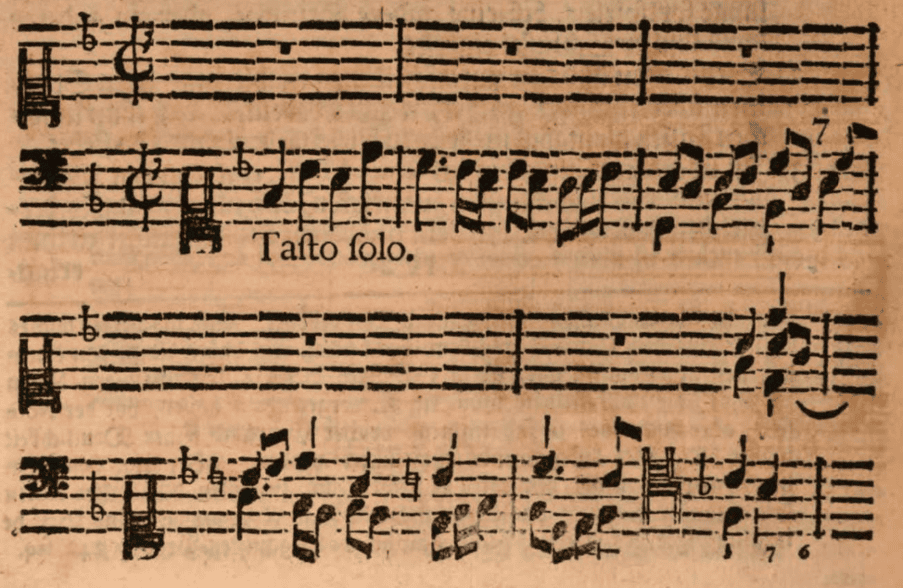 “Wo die Worte Tasto solo unter dem General-Baß stehen, da wird der Baß gantz schlecht und ohne Accompagnementgespielet, biß Accompagnamento oder Accordo stehet, oder auch Signaturen sich einfinden.”3